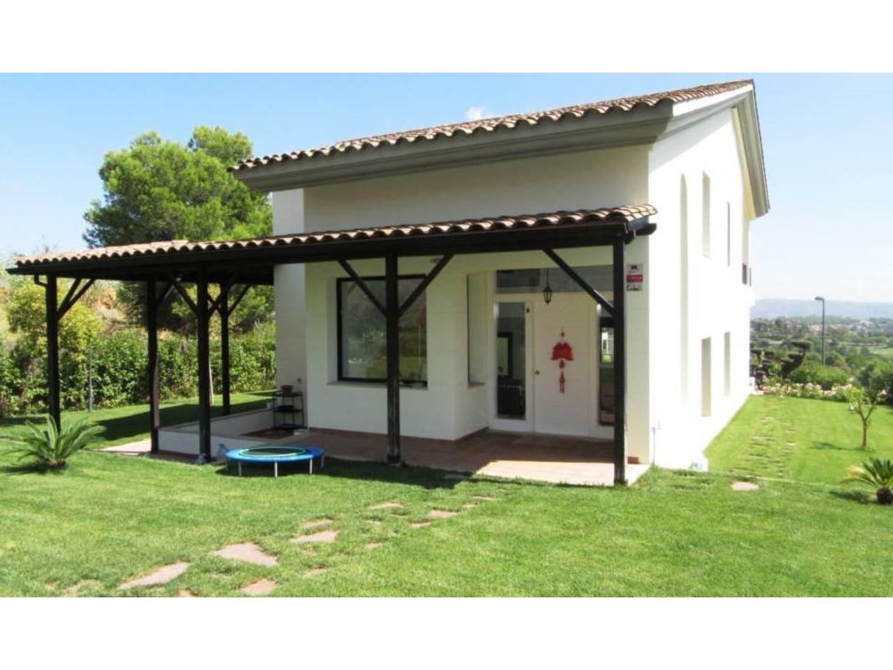 DescripciónCHALET DE ALTO STANDING EN CLUB DE GOLF MASIA BACH (SANT ESTEVE SESROVIRES). TIENE UNA SUPERFICIE DE 333 M2 DISTRIBUIDOS EN 3 PLANTAS. PLANTA BAJA TENEMOS UN GARAJE AMPLIO PARA 2 COCHES Y UN TRASTERO. EN PLANTA PRINCIPAL ESTA DISTRIBUIDA EN SALON-COMEDOR MUY LUMINOSO A DOS AMBIENTES CON CHIMENEA HOGAR Y AA. SALA BLANCA, 1 ASEO Y COCINA EQUIPADA. EN PLANTA SUPERIOR TENEMOS 4 HAB. DOBLES CON ARMARIOS EMPOTRADOS EN 3 DE ELLAS. SIENDO LA PRINCIPAL CON BAÑO SUITTE Y VESTIDOR Y TERRAZA PRIVADA. TAMBIEN TIENE UN SEGUNDO BAÑO MUY AMPLIO. LA CASA GRACIAS A SUS VENTANAS Y VENTANALES DISTRIBUIDOS POR TODAS LAS ZONAS TIENE MUCHISIMA LUZ NATURAL Y SOL. CUENTA CON UN ESPACIOSO JARDIN DE 1166 M2 QUE RODEA LA CASA. LA VIVIENDA CUENTA CON ACABADOS DE SUELOS DE PARKET Y PORCELANATO, VENTANAS ALUMINIO TIPO CLIMALIT, PUERTAS LACADAS EN BLANCO, QUE ADEMAS TIENE SU ACCESO DIRECTO PEATONAL A ZONA DE PISCINA COMUNITARIA Y ENTRADA PRIVADA AL COMPLEJO COMPUESTO DE 8 VIVIENDAS. TIENE ADEMAS ACCESO RODADO RESTRINGIDO. TRANQUILIDAD E INTIMIDAD CON EXCELENTES VISTAS. A 10 MINUTOS DE AP-7 Y A-2. SIN DUDA UN ENTORNO PRIVILEGIADO A POCOS MINUTOS DE BARCELONA.